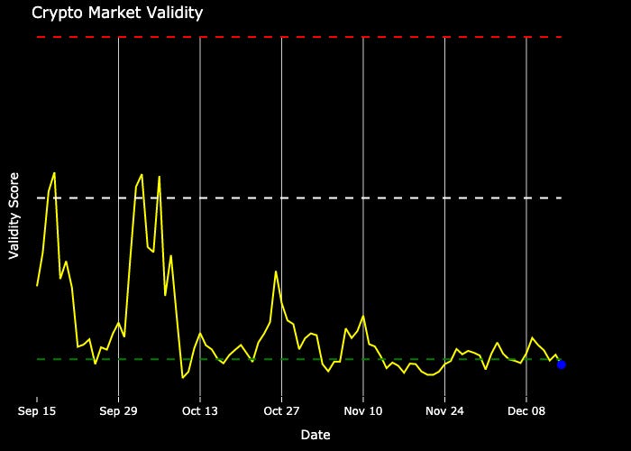 Interpretation: With most assets declining in market share to Stable (after the green vertical dashed line), we may see a price decline in the market as it searches for a new bottom. Ideally, the closes are above the lowest lows.