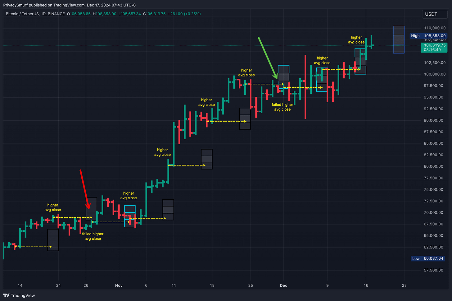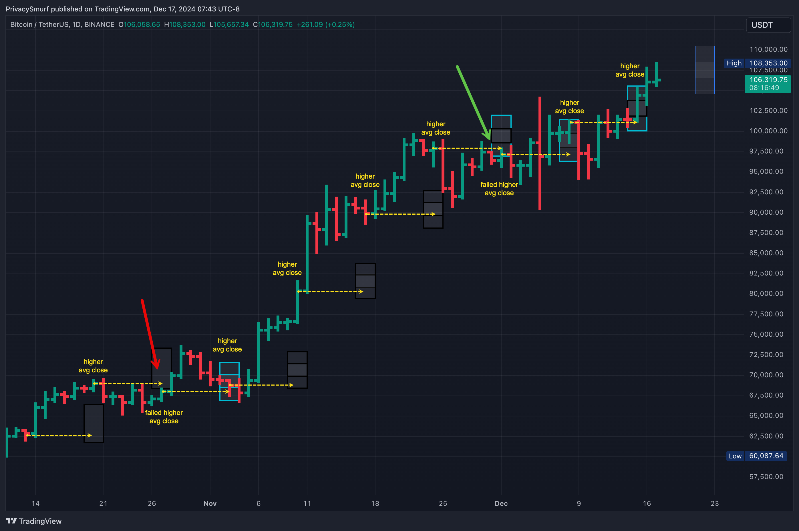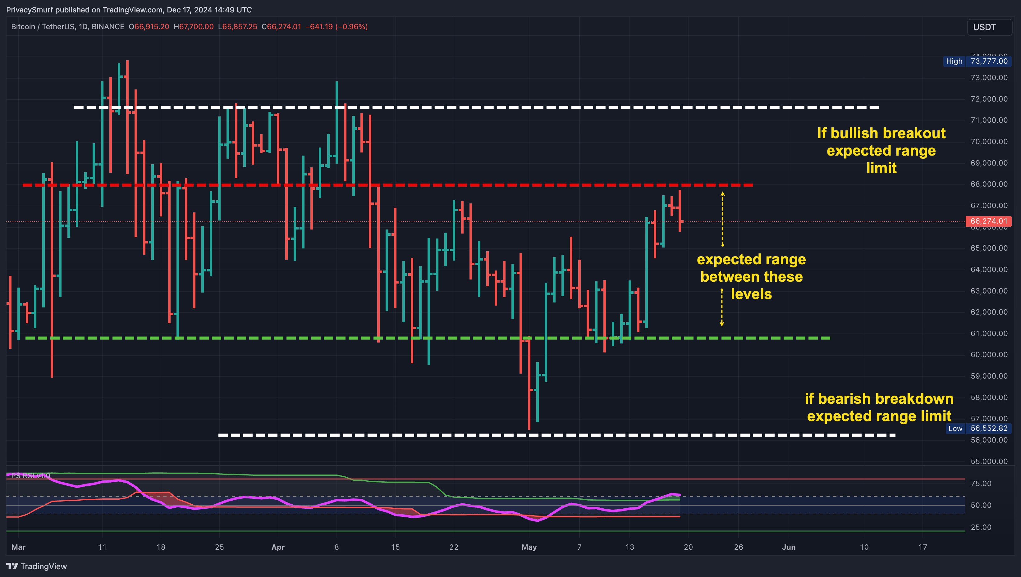 This would be expressed purely scientifically: “Given the current technicals, I can say with 95% confidence that the closing price for BTC this week will be between $104058.60 and $109726.06.”