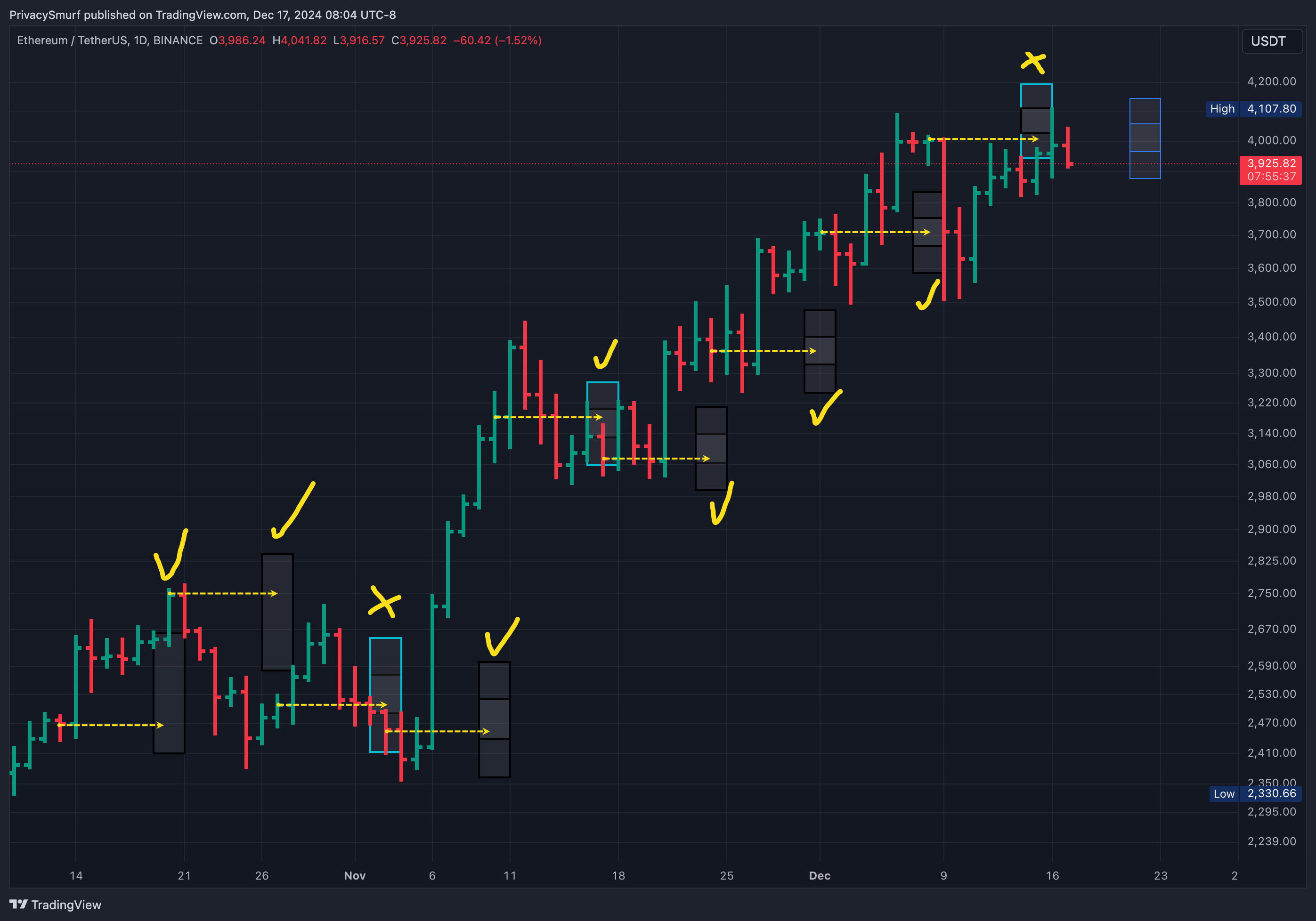 It’s less accurate on ETH overall, with one less precise range prediction but similar directionality estimations, two incorrect. However, both inaccurate mean directions were still close to the maximum expected range, so I guess it’s a wash.